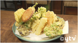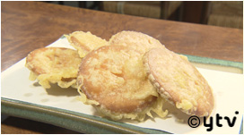 ビスケット、干し柿、りんごなど変わったものを使った天ぷらは、