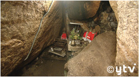 なんと自然にできた“岩穴の中”にあり、入るのに一苦労。