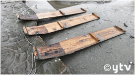 昔ながらの漁具「ガタスキー(押し板)」に乗って、干潟の上を滑走したり、