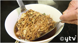 しょうゆベースの秘伝のタレ&かつおダシのスープに、