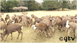 鹿寄せは明治時代に始まった催しで、ホルンの音色を聞いた鹿が一斉に集結する様はまさに圧巻!