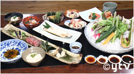 名物料理は、小豆島の食材を地元の醤油で食べる「醤油会席」。