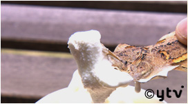 でべらをウエハースのようにしてソフトクリームをすくって食べてみてください。