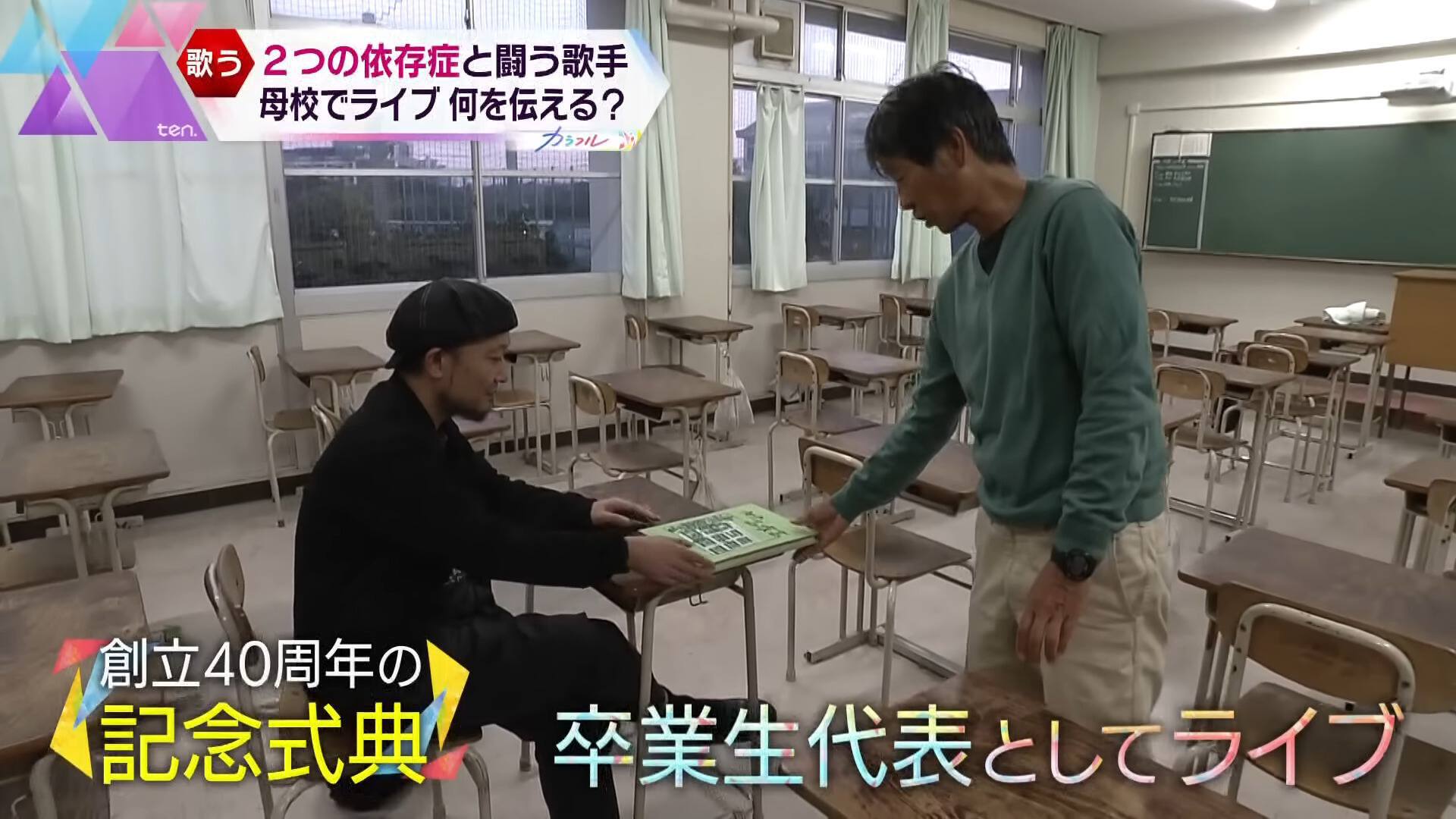 多くの後輩バンドからもリスペクトされ地元・神戸を代表するロックアーティストになっている彼ですが、最近は数年前に陥っていた「薬物依存」を公表し、同じような悩みを抱える人たちに寄り添う存在にもなっています。そんな彼が母校の40周年式典でライブを披露することに。どん底を経験した彼だからこそ若い世代に伝える「生」のメッセージとは?