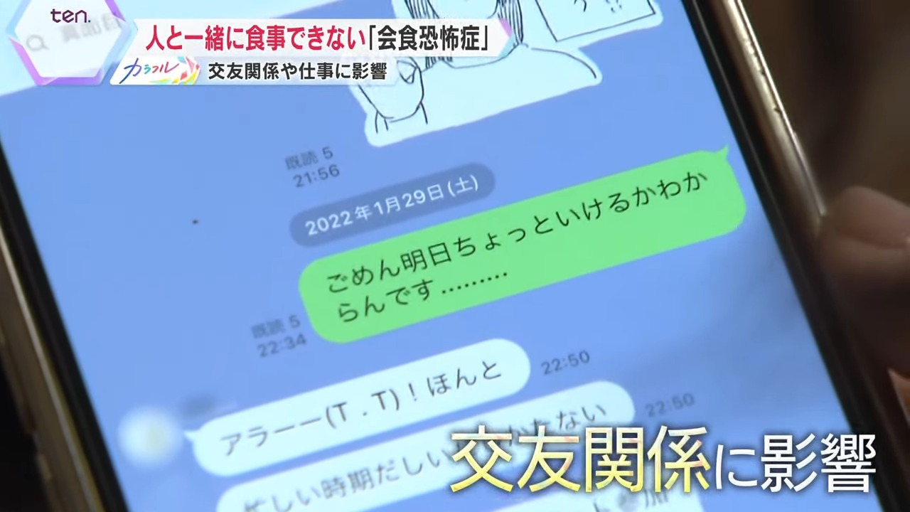 「自分が人と一緒に食事ができないと認識し始めたのが、中学生ぐらいのころです。お店に入った時点からしんどい、なんだか動悸がするとか…」