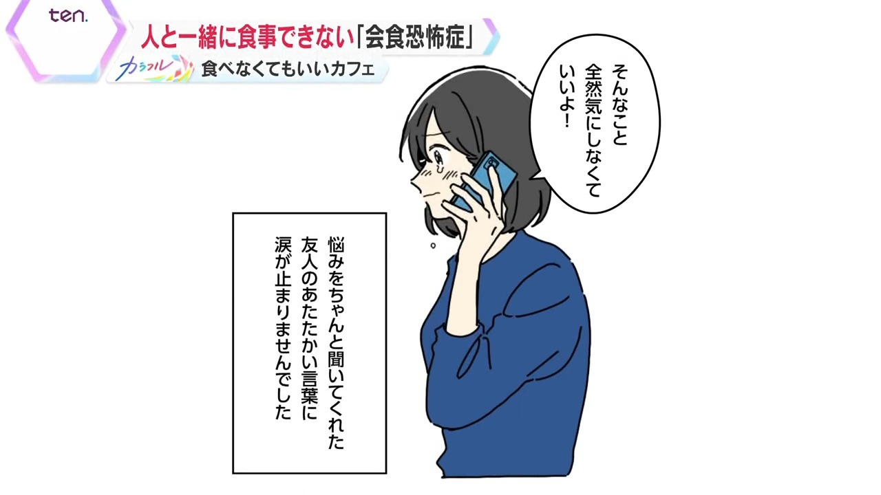 食べられない自分とうまく付き合っていくには、どうしたらいいか―。しおりさんは友人たちに、思い切って症状のことを打ち明けました。