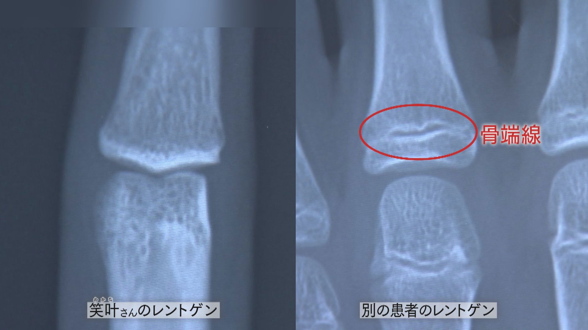 「骨端線」が無いことが判明(左が笑叶さんの写真)