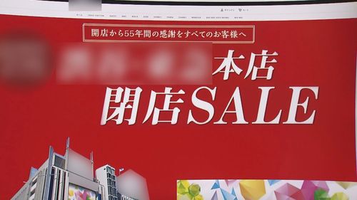 取材班がインターネット上で見つけた東京の百貨店のショッピングサイト。トップ画面では、本店の閉店に伴う「在庫セール」を打ち出し、店の最終営業日に撮られたものだろうか、店員らが店頭で深々と頭を下げる写真が掲載されていた。