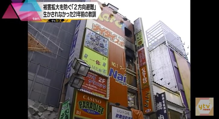 「2方向避難」は、21年前、東京・歌舞伎町の雑居ビルで起きた火災で、その重要性が指摘されていた。2001年9月1日未明に起きたこの火災は、ビル3階のゲーム店や4階の飲食店にいた客や従業員ら合わせて44人が死亡する大惨事だった。警察は放火の疑いが強いとみて捜査しているが、いまだ犯人は逮捕されていない。ほとんどの被害者の死因は一酸化炭素中毒で、現場に「2方向避難」が確保されていなかった点など、今回の放火殺人事件と類似する点も多い。