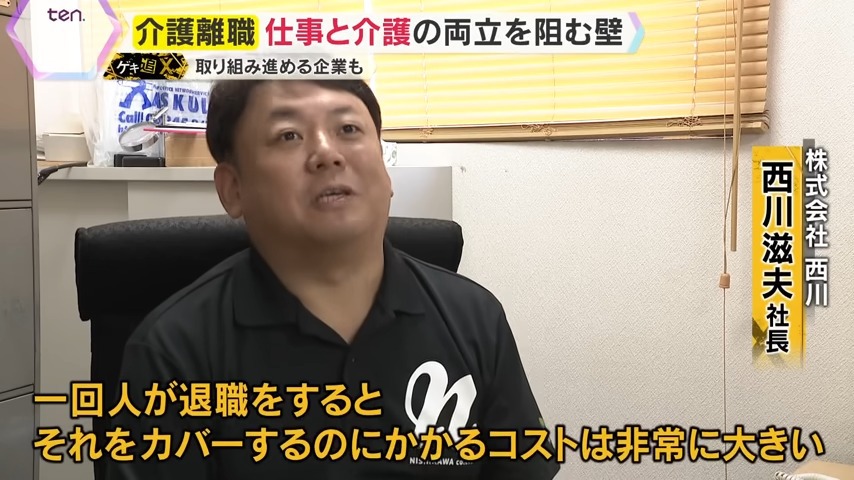 企業の中には、仕事と介護の両立を支える取り組みを始める動きもあります。株式会社『西川』では、社員が定期的に社会福祉士と個別面談を行うことができます。取り組みを始めてから、介護離職者はゼロになりました。