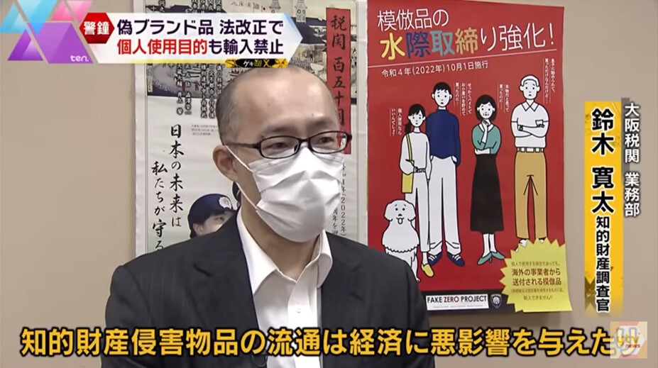 「知的財産侵害物品の流通は、経済に悪影響を与えたり、安全性が確保されていないものも多く、そういった知的財産侵害物品がまん延しないように、税関としてはしっかりと取り締まりをやっていきたい」(大阪税関業務部 鈴木寛太知的財産調査官)