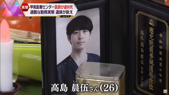 2022年5月、一人の若い医師が自ら命を絶ちました。高島晨伍さん(26)。仏壇の横には1着の白衣が掛けられていました。