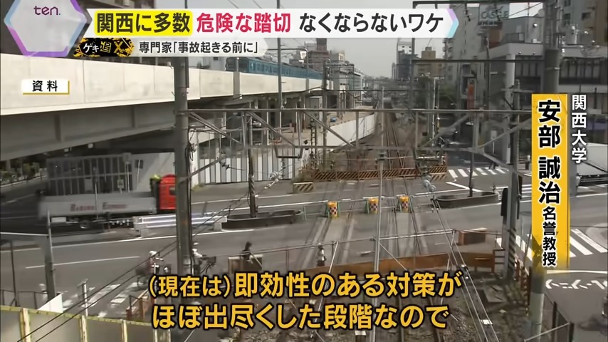 “危険な踏切”解消に、なすすべはないのでしょうか?鉄道の安全対策に詳しい関西大学・安部名誉教授は、「40年ほど前までは、鉄道事故というと踏切事故だった。(現在は)即効性のある対策がほぼ出尽くした段階なので、残っている踏切にはかなり特徴があり、個別の対策を取らなければいけなくなっている」と指摘します。