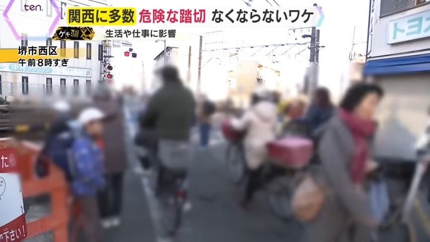 大阪・堺市の“開かずの踏切” 遮断機スレスレを走る人々