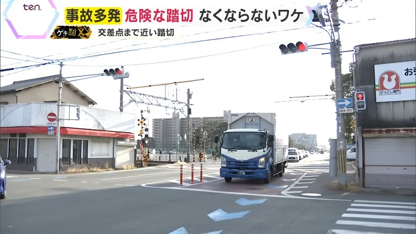 13年前の事故を受け、現場では、トラックが踏切内でとどまることを防ぐために、交差点に向かう中型以上の車の通行を禁止しています。注意喚起の看板を設置するなど一時的な対策が行われていますが、近隣住民によると、一日一回は中型トラックが通っていくのを見ることがあるといいます。危険という認識があっても、莫大な費用や関係者の多さから、抜本的な対策に時間がかかっているのが現状です。