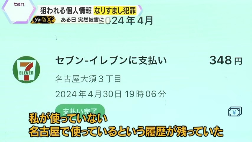 「発覚後にキャッシュレス決済アプリを開けたら、不正使用の履歴が全部残っていました。私が使っていない名古屋で使われている履歴が残っていて、ソフトバンクカードにも、勝手に引き出された形跡が残っていたので、それで分かりました」