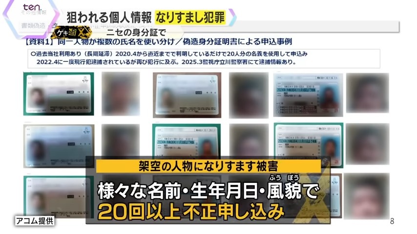 実在する人物になりすます手口は、この1年ほどで、アコムや関連会社では、数十件確認されたといいます。