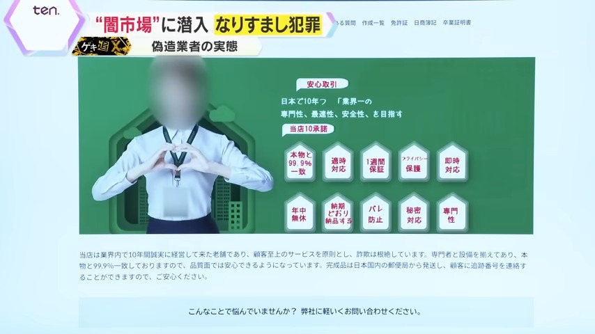 巧妙に偽造された身分証は、実はネット上で手に入れることができます。「本物と99.9%一致する」と謳うこの業者ですが、偽造する方法を細かく記しています。