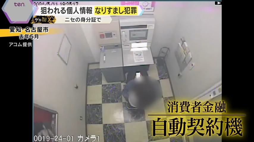 2024年5月、名古屋市にある消費者金融の自動契約機に設置された防犯カメラの映像には、女性が自動契約機で融資の手続きをしている姿が映っています。身分証で本人確認を行い、スマートフォンを見ながら操作をしていますが、ドアの外には警察官の姿がありました。