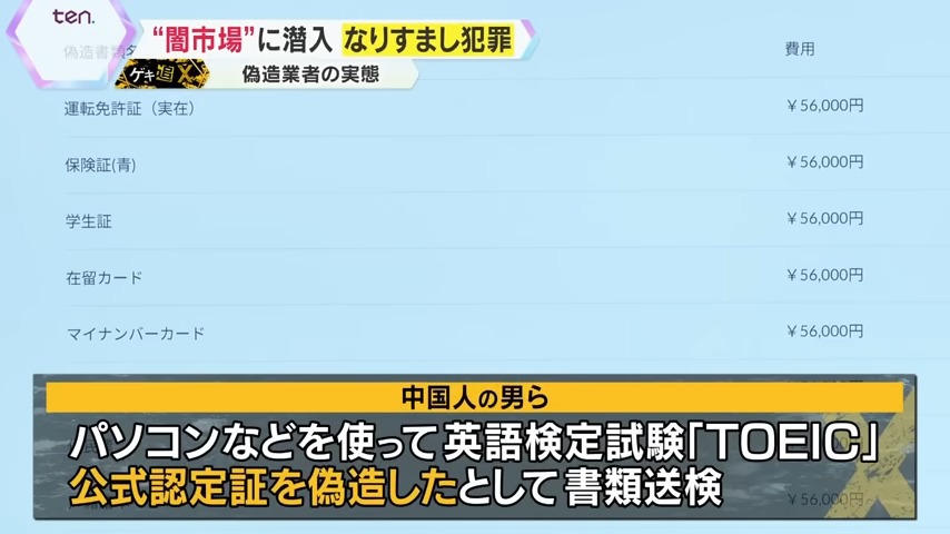 このサイトを巡っては2025年7月、パソコンなどを使って英語検定試験「TOEIC」の公式認定証を偽造したとして、中国人の男性など3人が書類送検されています。