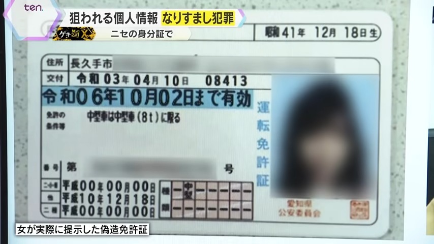 「実在している人物になりすましています。全く身に覚えのないところで、名前を使われて免許証を偽造されて、会社も実際に名義人が勤めている会社名を届け出て申し込んでくる場合もあります」