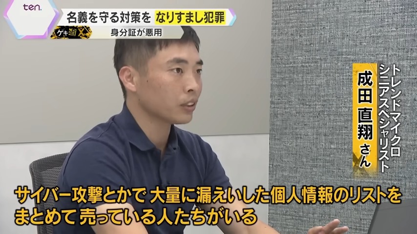 「サイバー攻撃などで大量に漏えいした個人情報のリストを、まとめて売っている人たちがいるので、個人情報を狙ったフィッシングサイトも多くあり、そこで免許証の情報を盗み取って、その情報を使って次の犯罪に巻き込まれたりする。まさに自分が全く知らないところで、詐欺に関わってしまっている。本人確認書類は、犯罪者からすれば使い勝手のいいツールになってしまっているので、情報をサイトに登録する時は、より注意して、実際に本物のサイトかを確かめた方がいいと思います」