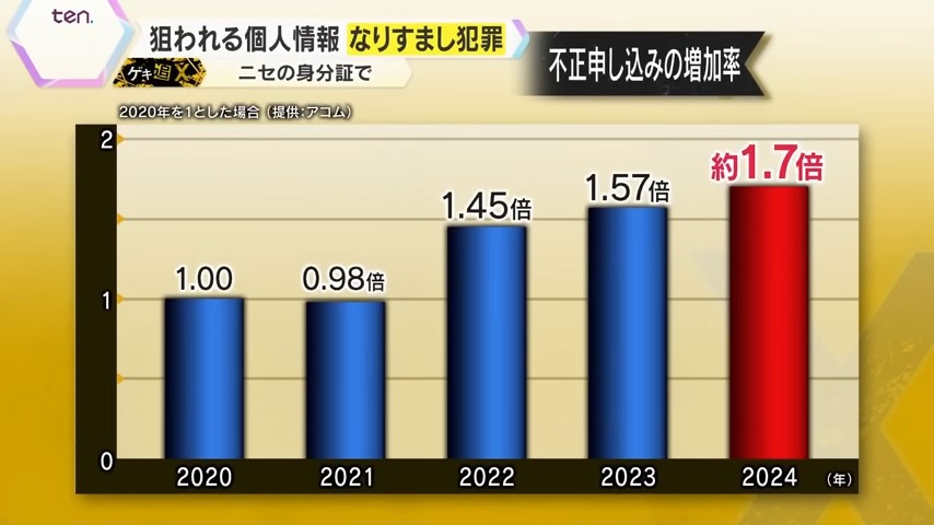 不正申込の件数は2020年と比べて2024年は1.7倍ほどに増え、今後、さらに増える見通しです。