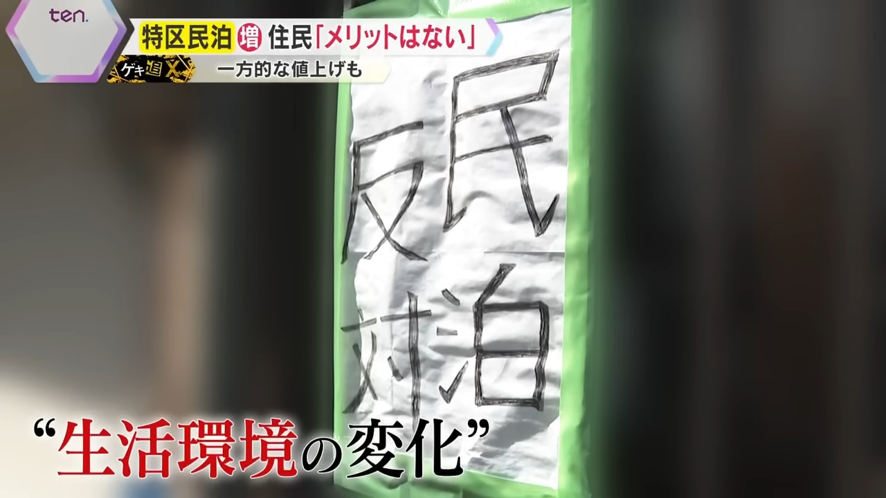 近隣住民らは、「ゴミ箱に蓋ができないぐらい、溢れ出る感じでゴミが散乱していた。火事が一番怖い」「地域として何のメリットもない。店があるわけではないので何の儲けもなく、迷惑を散らされるだけ」と話していて、特区民泊によりもたらされた“生活環境の変化”に戸惑いを隠せません。