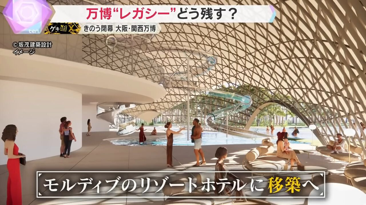 今回の万博のレガシーとしてポイントにあげたのが、海の蘇生がテーマの民間パビリオン『ブルーオーシャン・ドーム』。建築界の最高峰『プリツカー賞』も受賞した建築家・坂茂(ばんしげる)さんが手掛けた3つのドームです。