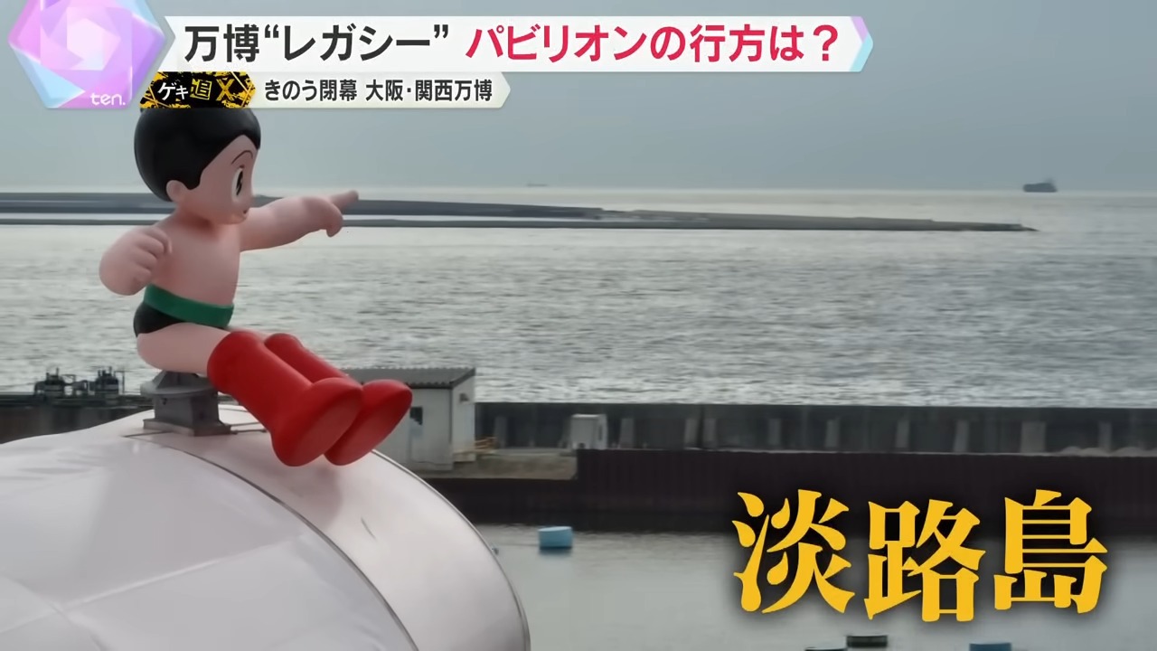 そのうちの一つが、アンモナイトの形をした外観で『いのち』がテーマのパソナ館です。iPS細胞で作った直径3.5センチほどのミニ心臓や、体の状態に合わせて最適な睡眠環境を作り出すベッドを展示しました。ナビゲーターのアトムが指さしているのは、移設先の淡路島です。