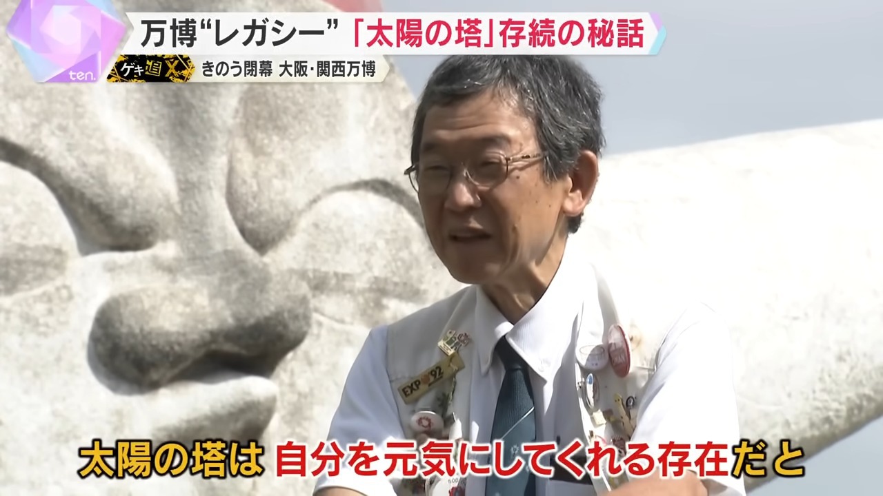 「岡本太郎さんも『太陽の塔はみんなの存在だ』ということで、ぜひとも残してあげてほしいという声もあって、永久保存が決まった。私にとっても、自分の生き方について教えていただいた存在でもある。過去は過ぎ去ったものだから背中に置いておいて、前に向かって歯を食いしばって頑張ったら、その先には輝く未来があるよと。太陽の塔は、自分を元気にしてくれる存在です」