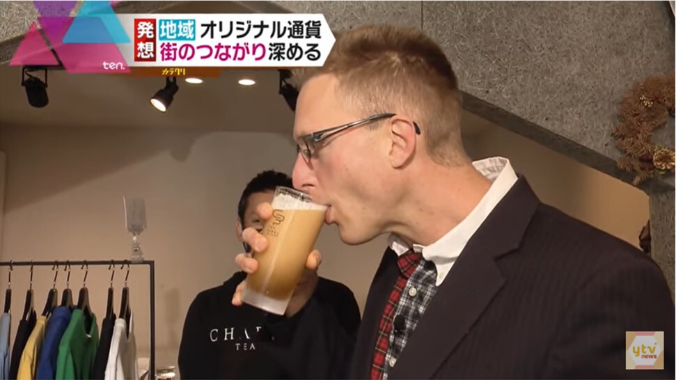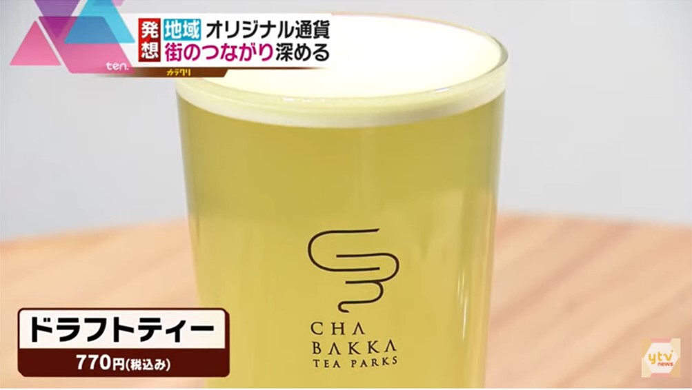 続いて、ジェイソンさんがお邪魔したのは鎌倉市御成町にある、日本茶専門のカフェ「CHABAKKA TEA PARKS」。こちらの一番人気は「ドラフトティー」という、窒素を含ませて注ぎ入れていく水出しのお茶。ビールサーバーから窒素をたっぷり含ませながら注ぐことで、まるでビールのようなクリーミーな泡が乗ったお茶になるんです。このドラフトティーも、コインを使った楽しみ方があります。