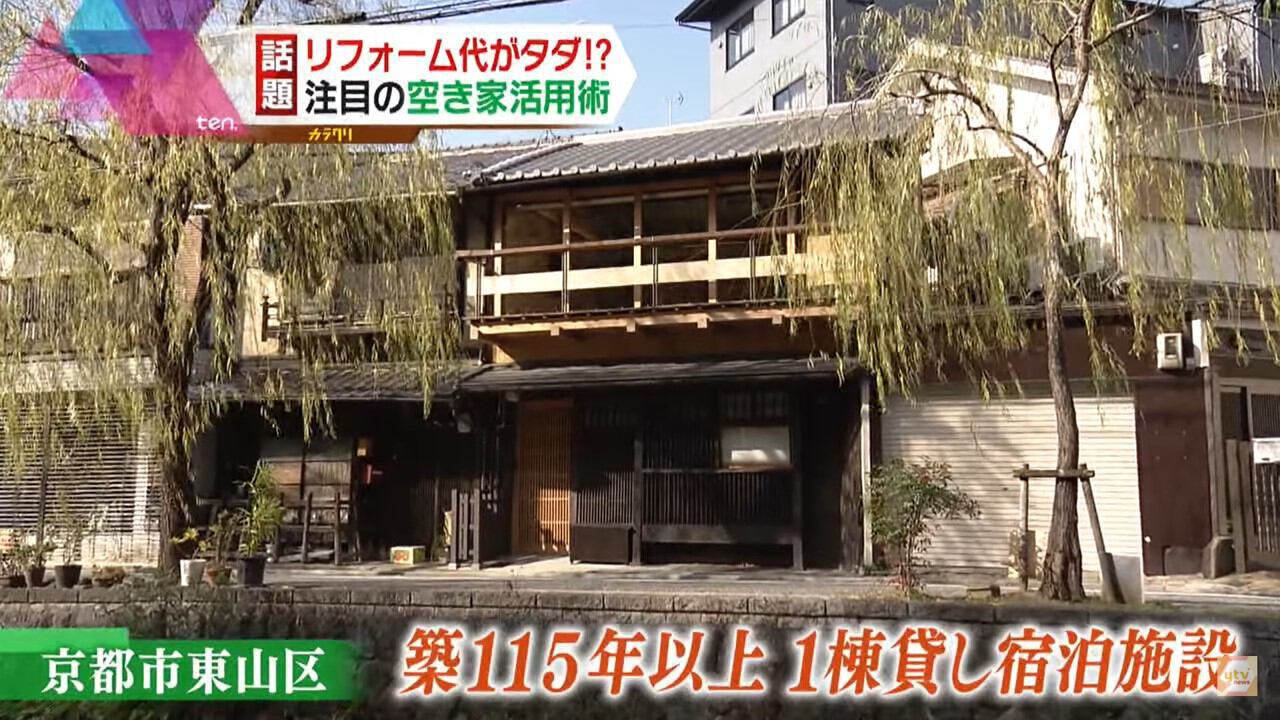 京都市東山区の建物、京都市内を流れる白川に面した築115年以上で一棟貸しの宿泊施設、この物件を管理しているのが、アキサポの印南さんです。
