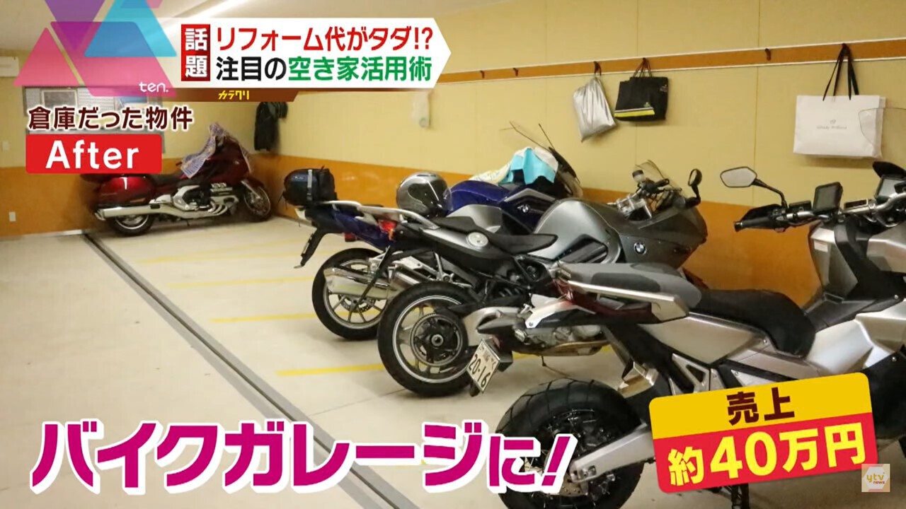 アキサポでは、オーナーの意向と周辺住民らへ聞き取り情報をもとに、どのように活用するか決めているんだそうです。例えば、倉庫だった物件は…近所に大型バイクを持つ人が多かったことからバイクのガレージに!月の売り上げは40万円もあるそうです。さらに、20年以上放置された社宅は、飲食店に生まれ変わりました。