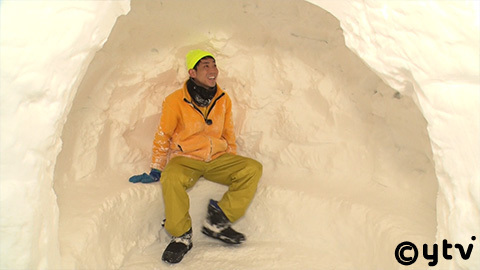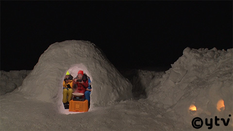 1.5mほど積もる雪の中、「かまくら作り」「凍らせ飯」「雪上運動会」「雪だるま作り」と