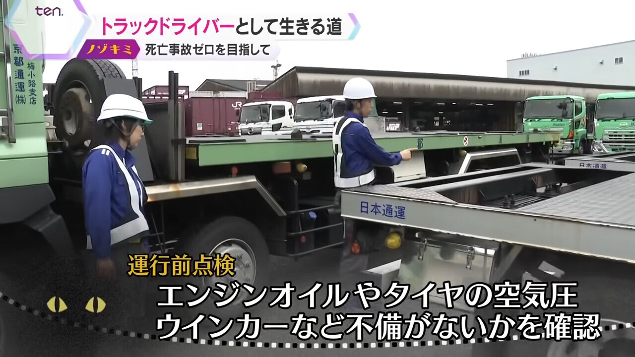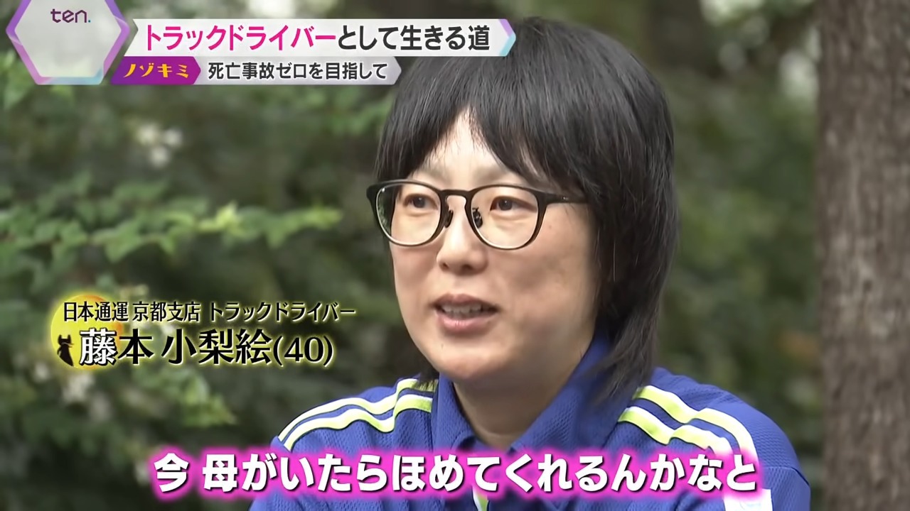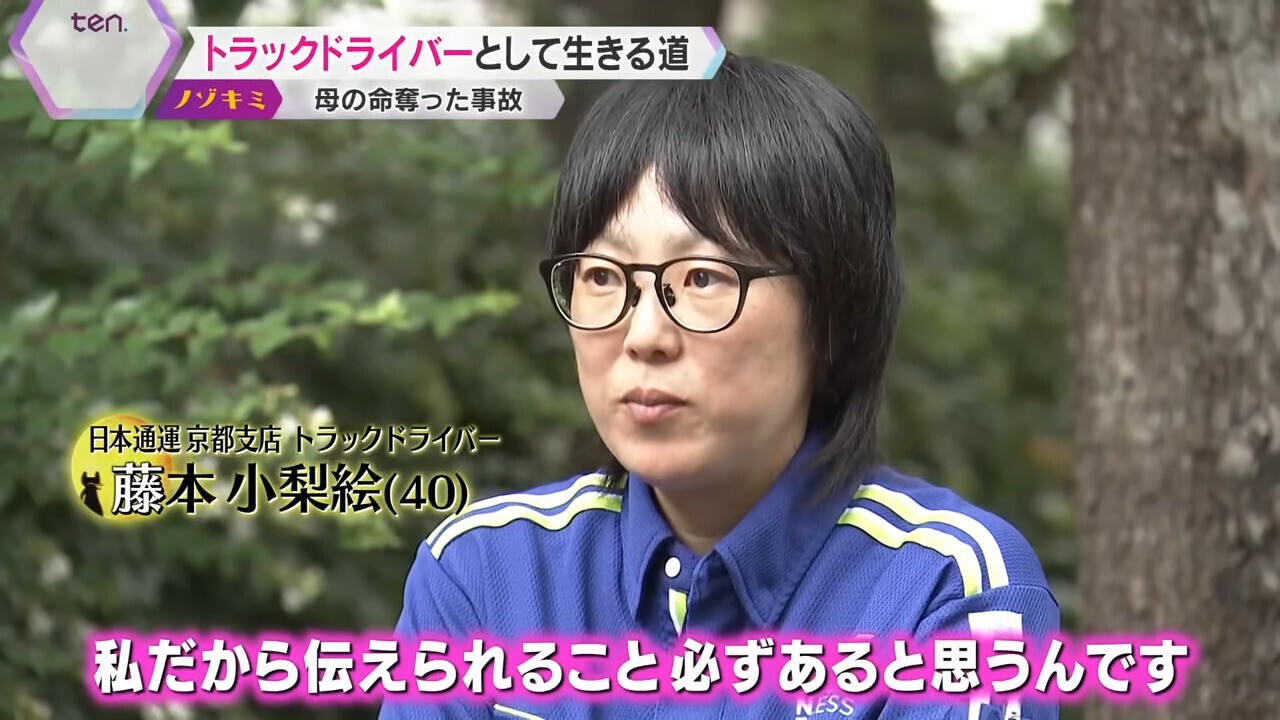 彼女は25年前に母親をトラックによる交通事故で失いました。事故からしばらくはトラックのことを憎み、避けていた時期もありましたが、トラック事故減ることのない現状をなんとか変えたい、私たちのような悲しい思いをする家族を減らしたい、そんな思いから安全運行と教育に力を入れていると感じた日本通運に入社しました。自ら安全運転を実践して、優良なドライバーを増やし、死亡事故をゼロにするのが彼女の目標であり夢でもあります。その思いに密着取材しました。