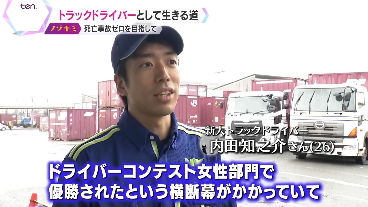 「バイトをしていた時に、近くに日本通運の事業所があって、ドライバーコンテスト女性部門で優勝されたという横断幕がかかっていて。もともと大型トラックに興味があったので、それを見て『そんな大会があるんだ』というのと、『女性でもそういう大会に出て優勝できるんだ』というので」