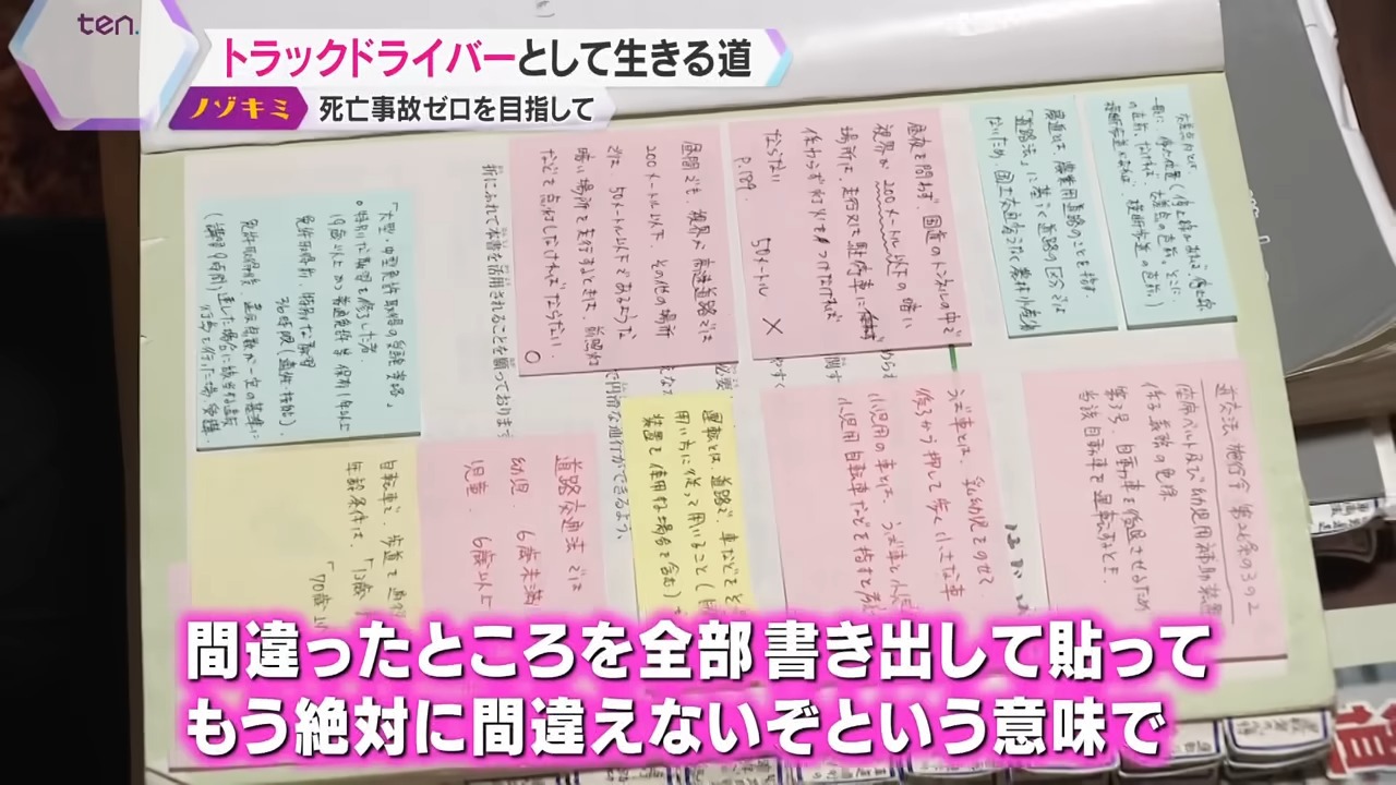 「過去の問題で間違ったところを全部書き出して、『もう絶対に間違えないぞ』という意味でここに書いて、これを読んでから始めて。トラックは待ちの時間があるので、そういう時間を利用して読んだりしていました」