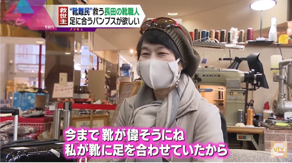 「足が薄いから、前にずれる。かかとがスカスカして22.5cmを履いてもスカスカするんですよ。何回も何回も失敗していて。私の足に靴が合わせてくれたら…今までは靴が偉そうにね、私が靴に足を合わせていたから。」