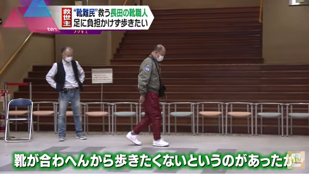 (男性客)「すごく歩きやすくなりましたね。やっと靴らしい靴ができたわ、と思って。靴が合わへんから、歩きたくないというのがありましたが、靴が出来て気兼ねなく歩けるというのが一番ですね。非常に良かったです。ありがとうございます」