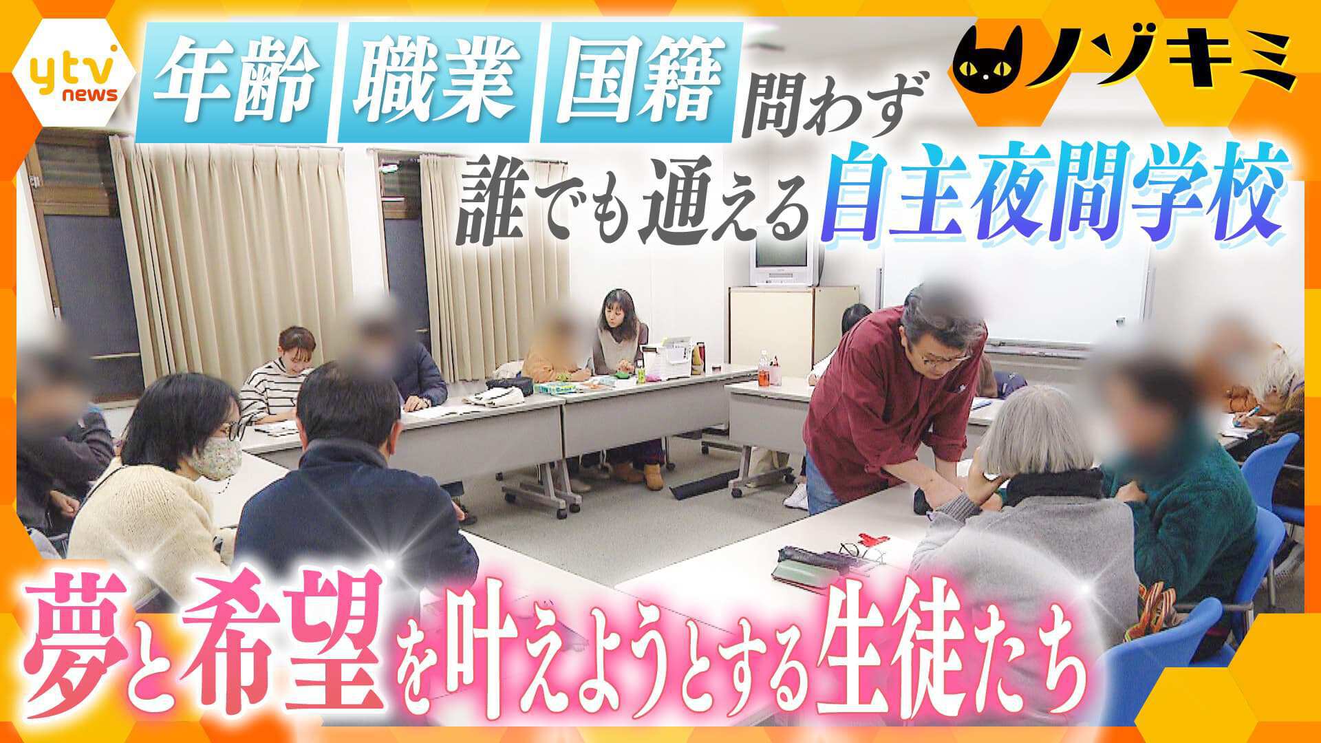 年齢や職業・国籍を問わず、学び直したいあるいは新たな学びを始めたいという人たちに学びの場を提供している自主夜間学校が京都にあります。今なぜ学びたいのか…シロクマ先生は「自分から勉強をしたいと思っているから、それは自分の生き方を開いていく」と言います。ノゾキミして見えてきたのは、それぞれが歩んできた人生と希望でした。
