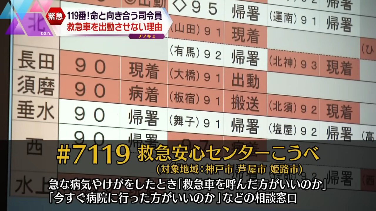 救急車を呼ぶべきかどうか、通報者自身が判断できないこともあります。限りある救急車を有効に使い、一人でも多くの命を救うため、神戸市消防局では、医師や看護師にアドバイスを求められる『救急安心センター』の利用を呼びかけています。