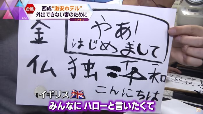 (ホテルスタッフ)「みなさん『書道』の時間ですよ!」