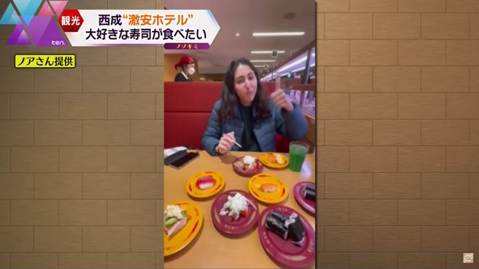 後日、送ってもらった動画には、目的通り寿司やうどんを堪能する姿がありました。