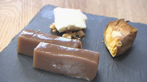 「燻製水ようかんと燻製安納芋~バニラアイス添え~」:580円(税込み)