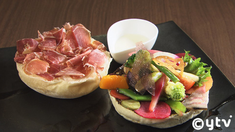 「リストランテ「祇園245」の生ハムと30種の菜園サラダサンド」:1,100円(税込み)