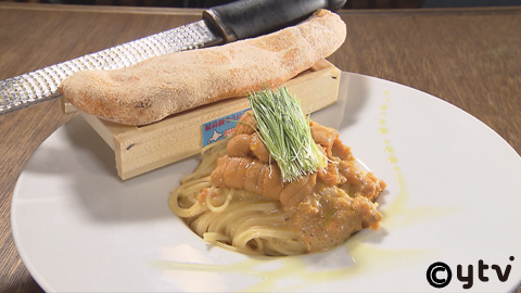「雲丹(うに)と自家製カラスミのペペロンチーノ」:3000円~(税抜き)