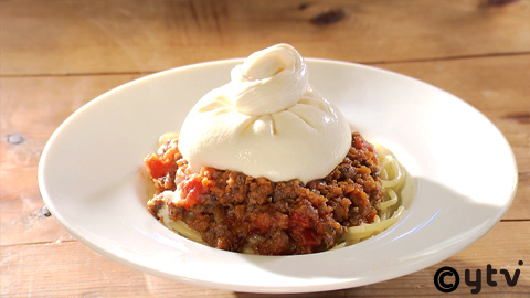 「自家製丸ごとブラータチーズをのせたお肉たっぷりボロネーゼ」:1680円(税抜き)