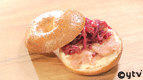 「サーモン&クリームチーズ(赤玉ねぎのピクルス付き)」:550円(税込み)