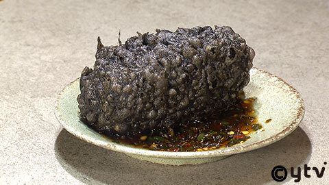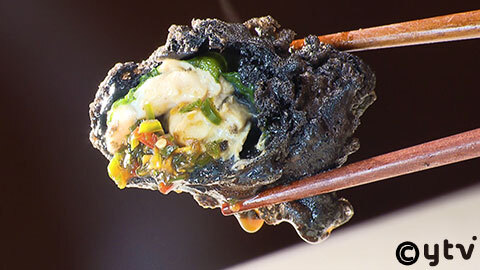 ●生牡蠣 黒天麩羅 青唐辛子のソース